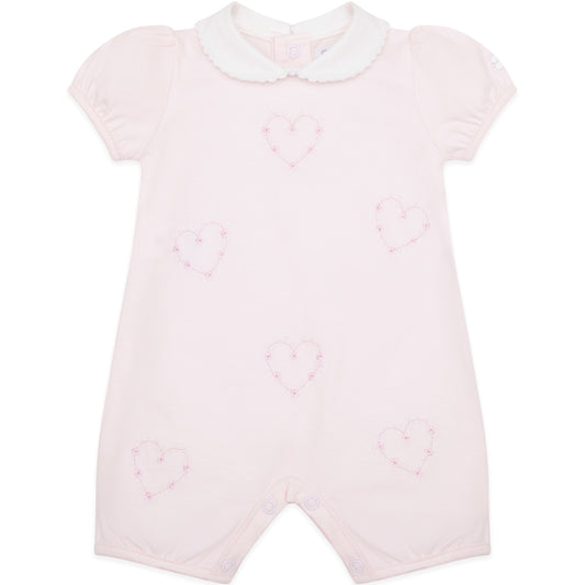 Emile et Rose - Jody Pink Baby Girls Heart Embroidered Summer Romper