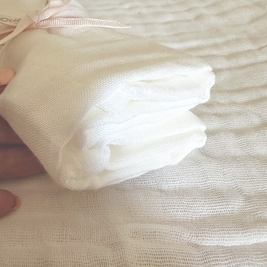 Moo - Crisp White Cuddly Organic Cotton Baby Swaddle